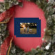 This elegant yet modern holiday photo card features a raised foil frame of small geometric shapes (squares, triangles, circles, etc) over a deep navy blue background and one horizontal photo. On the back is the same navy blue colour with plenty of space to add another photo and/or text.