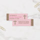 This charming Christening/Baptism favour tag features a background of a light pink, mocha brown and soft green polka dotted pattern along with a colourful pink, brown and green cross, which highlights the top of this tag. Your personalised text, in a combination of mocha brown and bright pink complete this design. Your guests will just adore this wonderful favour tag. Coordinating products available.