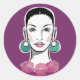 A stylish model wearing oversized retro earrings give a bold look to this girly design.