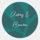 Mod Flower Petals Botanical Teal Wedding Classic Round Sticker