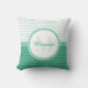 Mod Green and White Polka Dots Monogram With Name Cushion