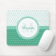 Mod Green and White Polka Dots Monogram With Name Mouse Pad