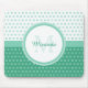 Give your personal style a girly contemporary look with this trendy green and white mousepad with a mod circle polka dot pattern. Any modern girl would love to have her name and monogram initial personalised on this preppy and modern design.