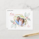 Unique and modern holiday photo postcard featuring a modern geometric (faux) gold foil frame with our watercolor holly berries and leaves.. All text is customisable. Add an additional photo to the back and your custom message.
