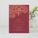 Celebrate your special day with this luxurious henna-inspired wedding invitation, perfect for couples seeking a bold and sophisticated design. Featuring intricate gold floral and paisley motifs reminiscent of traditional henna art, this invitation pairs rich, jewel-toned colours with elegant typography to create a stunning and culturally meaningful design. The refined serif and script fonts highlight the couple's names and details, ensuring an exquisite presentation.