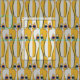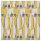 Colour block cats in 1960's style mod sunglasses, on a striped background, in goldenrod, midnight blue, living coral and light grey.