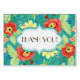 This is a matching Thank You card to match the wedding invitation set of the same name.   COLOR PALETTE:   turquoise, teal blue, coral, red, yellow, orange and lime green with a touch of chocolate brown.  DESIGN COLLECTION: Matching Thank You Notes, Note Cards.  Created from original watercolor hand painted artwork by Audrey Jeanne Roberts, this modern imaginative floral design has a trendy combination of colours.  Ranunculus, circle shaped flowers with various whimsical, cute, stylistically rendered flower elements are tossed over the background colour.  Some resemble wild roses, berries and daisies with fern style leaves.  A bracket style frame has polka dots and a calligraphy swirl type border.  There is a wide range of colour combinations available with this pattern.