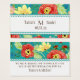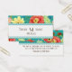 This is a matching Wedding Business Card to match the wedding invitation set of the same name. COLOR PALETTE: turquoise, teal blue, blush pink, coral, red, yellow, orange and lime green with a touch of chocolate brown. DESIGN COLLECTION: Created from original watercolor hand painted artwork by Audrey Jeanne Roberts, this modern imaginative floral design has a trendy combination of colours. Ranunculus, circle shaped flowers with various whimsical, cute, stylistically rendered flower elements are tossed over the background colour. Some resemble wild roses, berries and daisies with fern style leaves. A scalloped lace look border frame edge with a soft white text box. There is a wide range of colour combinations available with this pattern.