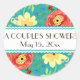 This is a matching Couples Shower Sticker to match the wedding invitation set of the same name. COLOR PALETTE: turquoise, teal blue, coral, red, yellow, orange and lime green with a touch of chocolate brown. DESIGN COLLECTION: Matching Thank You Notes, Note Cards. Created from original watercolor hand painted artwork by Audrey Jeanne Roberts, this modern imaginative floral design has a trendy combination of colours. Ranunculus, circle shaped flowers with various whimsical, cute, stylistically rendered flower elements are tossed over the background colour. Some resemble wild roses, berries and daisies with fern style leaves. A bracket style frame has polka dots and a calligraphy swirl type border. There is a wide range of colour combinations available with this pattern.