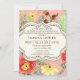 This is a matching Rehearsal Dinner, Groom's Parents Dinner Party Announcement Invite. COLOR PALETTE: blush pink, coral, red, yellow, orange and green with a touch of chocolate brown. DESIGN COLLECTION: Created from original watercolor hand painted artwork by Audrey Jeanne Roberts, this modern imaginative floral design has a trendy combination of colours. Ranunculus, circle shaped flowers with various whimsical, cute, stylistically rendered flower elements are tossed over the background colour. Some resemble wild roses, berries and daisies with fern style leaves. A bracket style frame has polka dots and a calligraphy swirl type border. There is a wide range of colour combinations available with this pattern.