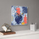 Indigo blue colorway. Shades of washed indigo blues make up the background of this print with accents of navy blue, denim blue, living coral, ochre and cream. It is time for summer… all year round. Our modern abstract tropical print features monstera leaves and other organic shapes. This retro print is great for tropical decor, dorm rooms, patios, beach houses and more. This design comes in several colorways.