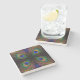 The coasters are gorgeous, a quality feel and heavy weight. They look like a precious archeological find. A rustic stone juxtaposed with a modern floral black and white print. I like the way the print goes slightly imperfect on the cut stone edges giving them a kind-of natural beauty.