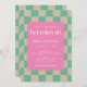 Mod Pink Mint Green Chequerboard Bat Mitzvah Invitation