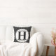 A modern large monogram in black and white, on a circle shape surrounded in a classic black and white polka dot patterned background. Personalise with your family surname and wedding date for a stylish monogrammed throw pillow for any decor.
