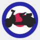 Mod scooter sticker with Iconic mod target roundel with black scooter silhouette in centre of graphic.