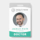 Modern personalized photo id badges for employees, highlights the color of job title, customize the employee name and photo, also the company logo and name. On the back, you can edit more information like company name, address and phone number, also add or remove barcode as you wish.