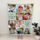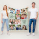Sage green photo collage fleece blanket to display and enjoy 10 of your favourite pictures of family, friends, grandchildren, pets, memories, etc. Add two sections of your custom text in modern typography.