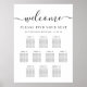 Modern downloadable wedding seating chart poster for up to 10 tables featuring "welcome" in a chic script with swashes, "Find Your Seat," your names and wedding date in elegant serif typography, and the table numbers and guest names in simple typography. Select the digital download option to edit with last minute changes and print locally.