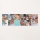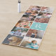 Modern photo collage and monogram aqua blue yoga mat. It features 11 family photos and your initial/monogram on a green square colour block. The back includes colourful colour squares in several colours. Photography © Storytree Studios, Stanford, CA