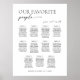 Modern Script Wedding Seating Plan. Our Favourite People sign. Personalised Simple Minimalist Seating Chart for 110 guests (11 tables). Just click the customise further link, shown under the text personalisation area on the right, and choose your custom colour background. This sign poster template makes it fast and easy to create stunning additions to your wedding decor. Signs can be enlarged, there are many sizes to choose from, as well as options for custom framing and matting.