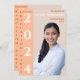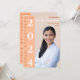 A modern and vibrant Graduation Invitation to celebrate the success of any dynamic and enthusiastic youth. This modern invitation features the peach, colour of the year, palette. The text is simple and effective. Customise this design by adding your own photo. We suggest cut out a photo without any background. On the back of the card, add your own QR code with a link to the party details. This invitation is also available for digital download. For further customisation and other enquiries, please email remidevandesigns@gmail.com