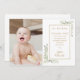 Modern 1st birthday thank you photo featuring woodland greenery leaves. Personalise with your photo and special birthday thank you message in chic gold typography. A perfect way to say thank you! Designed by Thisisnotme©
