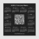 Create your own modern 2023 calendar black magnetic card featuring a customisable QR code, company name, and business website or contact info. Personalise the QR code with your portfolio or website link and add your text in the sidebar. Surrounding your smart code is a small white 2023 calendar on a black background. Makes a great promotional giveaway for customers. Includes an envelope for easy sending (or get it without one in the sidebar). (Changing the 2023 year text will NOT change the calendar.)
