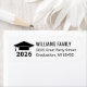 Modern custom address label design features a black grad cap with tassel, class year, return address text and white background colour that can be customised to match any school or invitation colours.