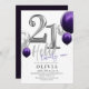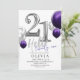 Modern 21st Birthday Party Silver Purple Balloons Invitation