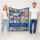 Modern 25 Photo Collage Quote Family Name Blue Fleece Blanket