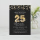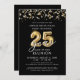 Modern 25 Year Class Reunion Black Gold Streamers Invitation