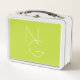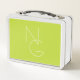 Modern 2 Overlapping Initials | Lime Green Metal Lunch Box