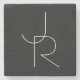Modern 2 Overlapping Initials | White on Black Stone Coaster
