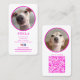 When your furry best friend is everyone's favourite Pet influencer ! Pet business cards for all dog cat pet fans so they can follow your insta famous pet star. Perfect for pet meetups, auditions, pet shows and promotional marketing campaigns. These professional social media business cards are perfect to show off your pet star. Front of card has your favourite custom pet photo with a bright pink frame and social media contact information. Back has your second photo and a quick easy scannable QR code in pink to match photo frames. Great way for everyone to connect and stay in touch. Original design © Marisu Valencia