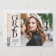 These invites feature one full-bleed photo on the front with a trendy contemporary GRAD black typography standing over a vertical sheer white overlay band, along with the graduate name and class year. The back of the card is customisable with a second picture, with the graduate's parents' names, and with the graduation ceremony information.