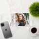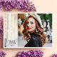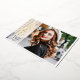 On the front, there's a full-bleed portrait with a fashionable modern GRAD real foil typography standing over a vertical sheer white overlay band, as well as the graduate's name and class year. The reverse of the card may be customised with a second photo, the names of the graduate's parents, and information about the graduation ceremony.