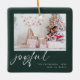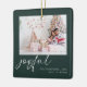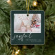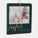 Modern 2 Photo Joyful Script Christmas Green Ceramic Ornament