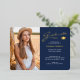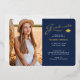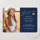 Modern 2 Photo Navy Blue & Gold Foil Grad Card