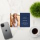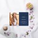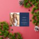 This double sided 2 photo stylish graduation announcement or thank you card with real gold foil, features modern text fused with elegant calligraphy script in gold foil and white on navy blue. Photos are one on the front and one on the back, perfect for framing. The background can be easily customised to a colour of your choice. To see more items like this, visit my store here at "www.Zazzle.com/LakeViewCardCo". Thanks