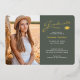 This double sided 2 photo stylish graduation announcement or thank you card with real gold foil, features modern text fused with elegant calligraphy script in gold foil and white on sage green. Photos are one on the front and one on the back, perfect for framing. The background can be easily customised to a colour of your choice. To see more items like this, visit my store here at "www.Zazzle.com/LakeViewCardCo". Thanks