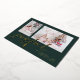 Modern 2 Photo Script Joyful Christmas Green Foil Holiday Card
