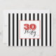 A chic and modern 30th birthday design you can personalise and send out for your thirtieth birthday party celebration. The design is with text 30 & FLIRTY using popular typography in colours of candy apple red and black. A black and white stripes pattern complements the reverse. Enjoy!