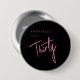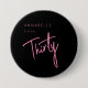 Custom 30th birthday black button with pink text perfect for thirtieth birthday party celebrations. Customise with your own name. Colours can be edited in the design tool. Please use the message me button below for help with further customisation and special requests. © Zoe Chapman Design
