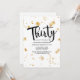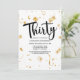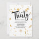 This eye-catching 30th Birthday Invitation is laid out on a light background, and is comprised of gold confetti surrounding the word "Thirty" that is written in a modern, trendy script, and is just above a customisable text.