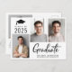 Modern Class of 2025 graduation announcement postcard featuring 3 photos and "Graduate" in a contemporary bold script. Add the grad's name, class year and high school or college in simple typography.