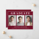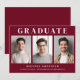 Modern 3 Photo Burgundy Graduation Announcement