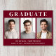 Modern burgundy red graduation announcement featuring 3 photos, "Graduate" in elegant white typography and the grad's name, school and class year in clean white lettering.