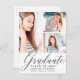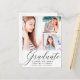Announce your 2022 graduation to family and friends and invite them to your party with this modern personalised photo collage grad announcement and party invitation postcard. The front of the card has three photos for you to change to your own. Below in modern black script it reads "Graduate" with your name, class year and school name to personalise. The back of the postcard has more of your graduation details to customise. Designed by artist Susan Coffey.