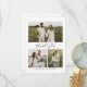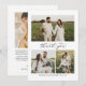 This modern white thank you card showcases a trio of wedding photos on the front, with elegant calligraphy script centred between the images. The back features a single portrait photo alongside a fully customisable thank you message. A clean white border frames the layout, keeping the focus on your favourite memories. Names and wedding date are fully editable.