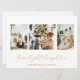Celebrate the season with this modern three-photo holiday card featuring your favourite family memories and the phrase “love.light.laughter” in elegant gold script. Designed with a minimalist layout and soft emotional tone, this card puts your photos at the heart of the message while offering a warm and peaceful seasonal greeting. The back of the card includes this heartfelt message: